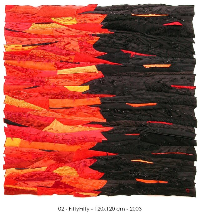Contraste rouge et noir. Les bords non droits laissent l’énergie volcanique s’échapper.