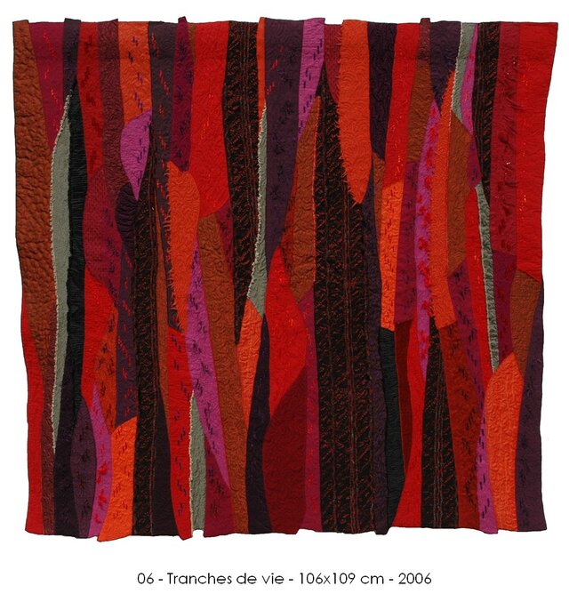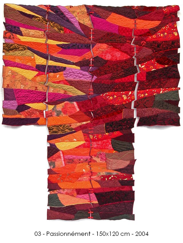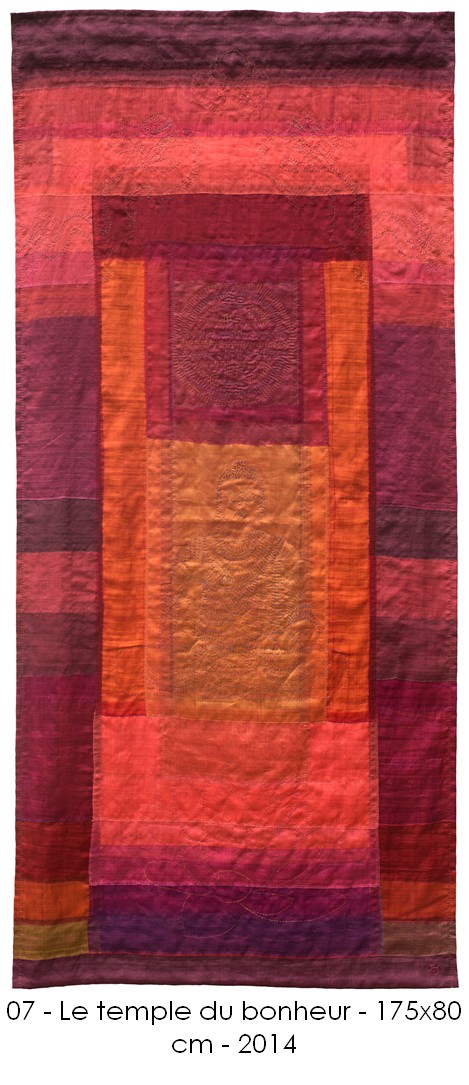 Nuances plus subtiles pour « Le temple du bonheur ». Superposition de tissus en organza de soie, maintenus et brodés à la main au point avant.