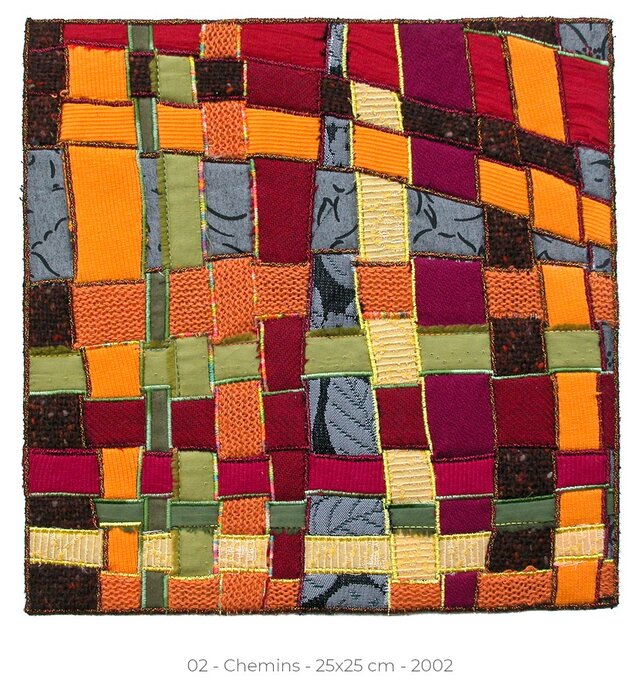 Tissage de bandes de tissus en exploitant les couleurs, les textures, les formes, les lisières…